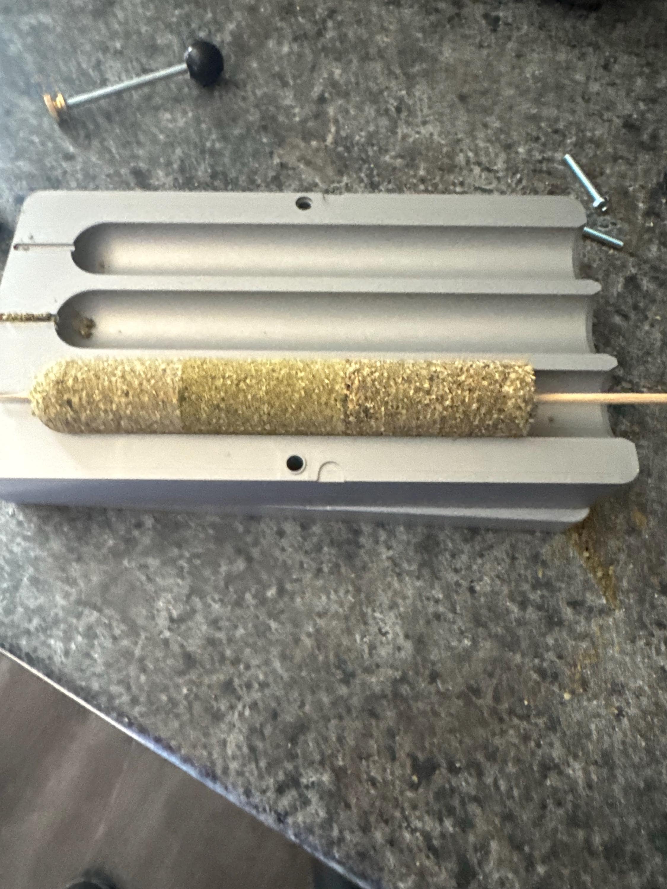 Patent high quality commercial grade aluminum presses / molds for cigar and cannagars.   Hard coat Anodized for a slick surface.  Super tight tolerances to minimize any additional cleanup work before finishing your cigar.  Select ring sizes you want.    Modular design to expand this mold by adding inserts.   1/8" skewer holes that do not extend out of the mold.   This allows for smaller skewers and also allows for packing in material without the skewers having to hang out.  Stand the mold up on your workbench load it up.   Mold can be expanded cheaper than buying another mold.   Look for our insert listing.
